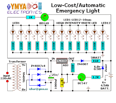 ada gambar rangkaian lampu emergency dengan LED sebagai penerangnya,